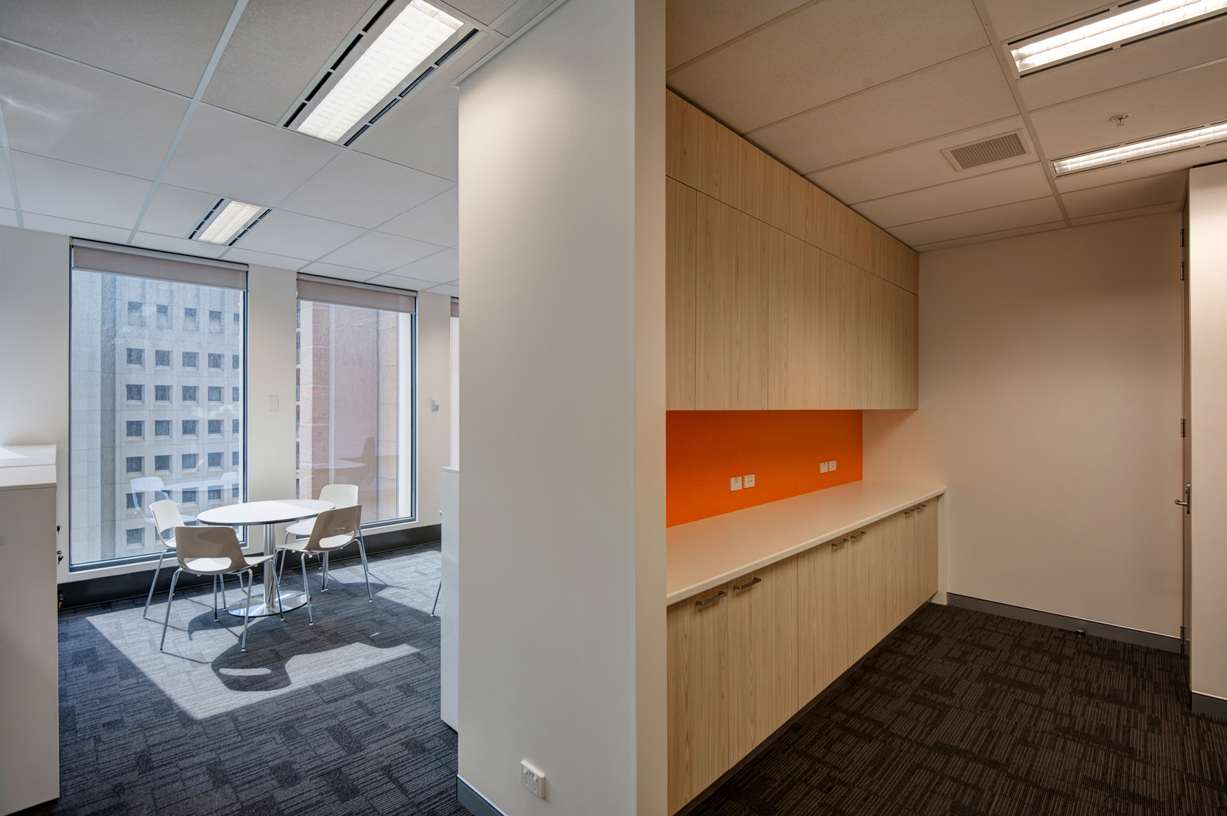 The new design includes open plan workstations that can be divided up in to teams, ‘hot desk’  zones, soundproof training rooms and offices for executives. A staff room and staff break out area complete the fit-out and provide an informal space for staff to interact
