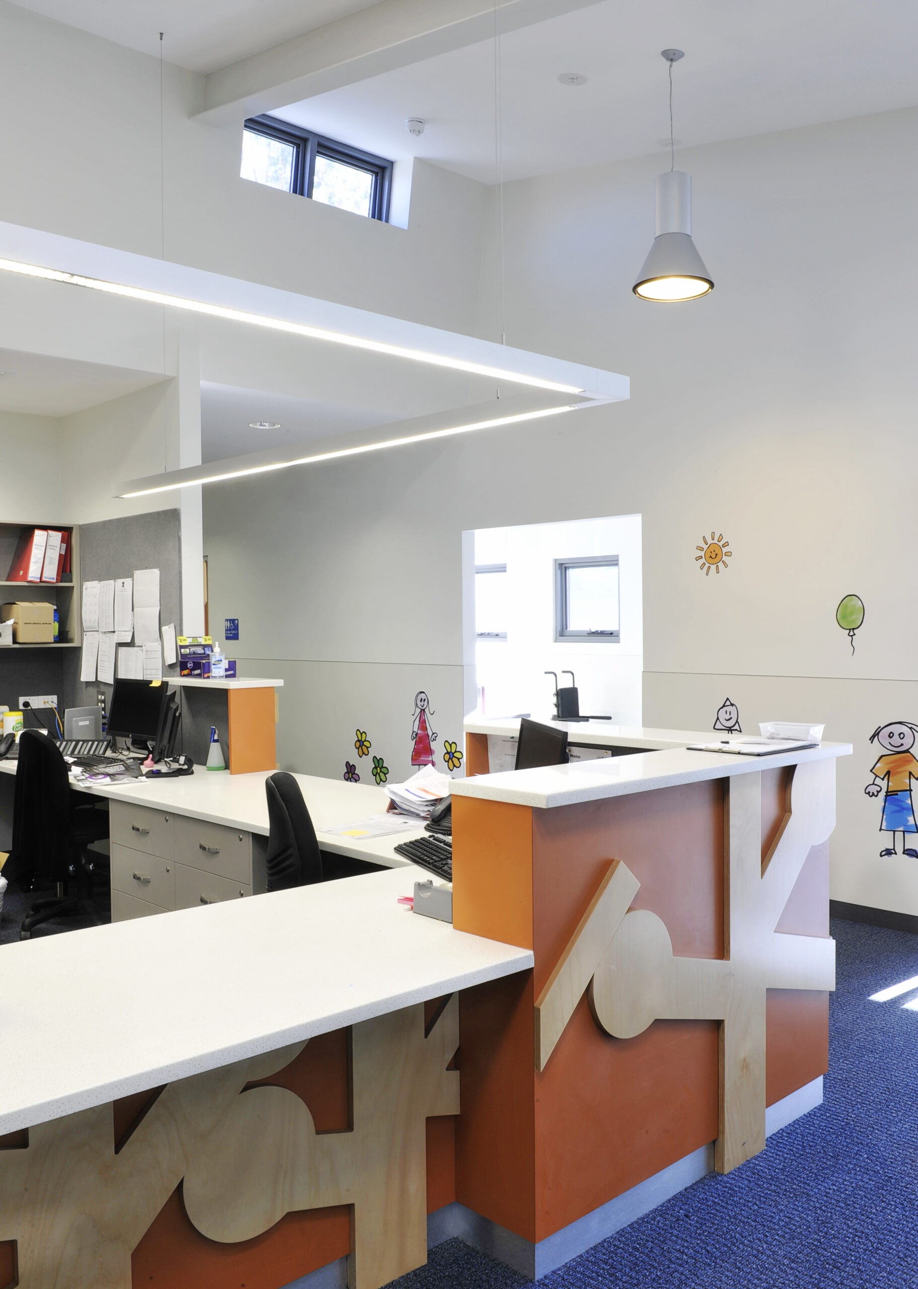 The purpose designed centre provides a range of support services including physiotherapy, psychology, social work, speech pathology, occupational therapy and paediatric specialists in a family centred space. Focussing on children and teens with severe disabilities such as cerebral palsy, muscular dystrophy, down syndrome and autism, the centre incorporates a variety of uses including large treatment rooms, group rooms, gymnasium, undercover running track and observation rooms
